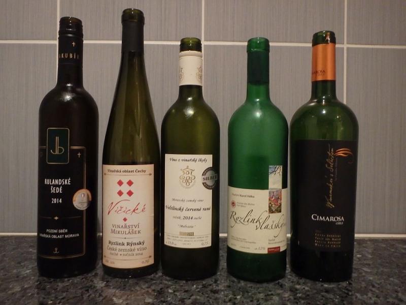 Rulandské šedé 2014 pozdní sběr, polosuché, Vinařství Jakubík a.s., Zlechov - broskvová vůně, chuť kořenitá až lehce tramínově, grepy, jemná hořčina v závěru. Víno připomíná více tramín, lepších 7 bodů. Alkohol 12,5 %. Nálepka Stříbrná medaile Národní soutěž vín 2015. Ev. čj. jak. 60O1-15/13, č. šarže 42/14. Koupeno 2016 v karlovarské vinotéce U Kapličky za 229 Kč.