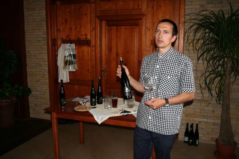 Opět zaplněný salonek penzionu Birdie poslouchal výklad a ochutnával vína, která prezentoval sommeliér vinařství David Toman. Mezi návštěvníky kupodivu převažovaly ženy, možná proto, že sladší vína jsou spíše jejich doménou. Dámy sice s úsměvem komentovaly typicky český „dres code" majitele vinotéky (kraťasy a sandále s ponožkami), ale nikomu to nevadilo, protože vše probíhalo v příjemné neformální atmosféře letního podvečera a všichni se těšili na to hlavní, tj. víno.