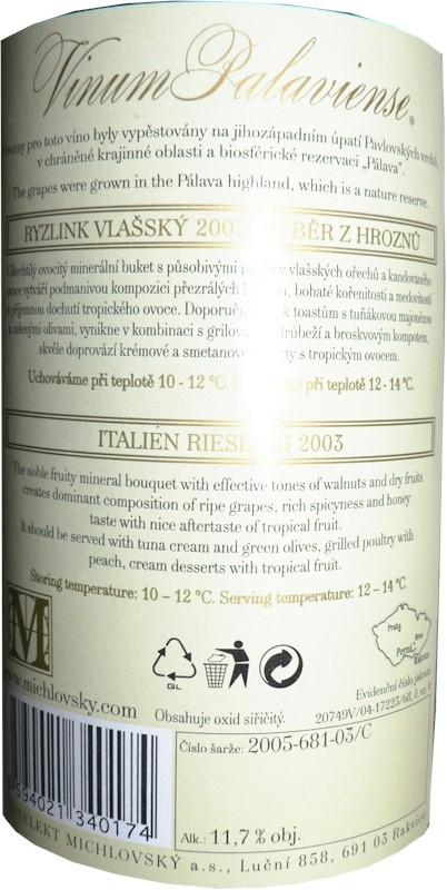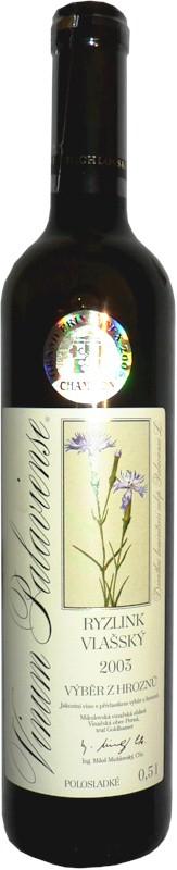 Ryzlink vlašský 2003 výběr z hroznů - Vinselekt Michlovský a.s. Rakvice