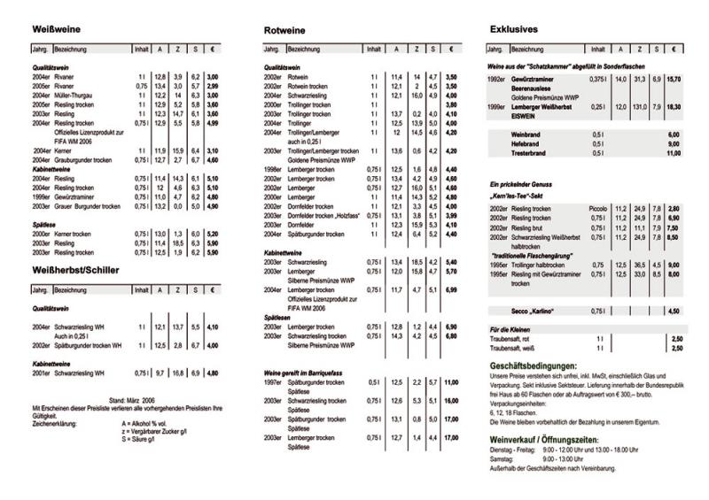 Shrnutí údajů o dnešním víně:Odrůda: LembergerRočník: 2004Jakost: KabinettVinařská oblast: WürttembergVinařská obec: OberderdingenZbytkový cukr: trocken = suchéObsah alkoholu: 12 %Teplota podávání: 16° až 18° CVýrobce: Weingut Kern, OberderdingenCena: 5,99 € tedy asi 170,- Kč - lokální vinotéka poblíž Stuttgartu, duben 2006
