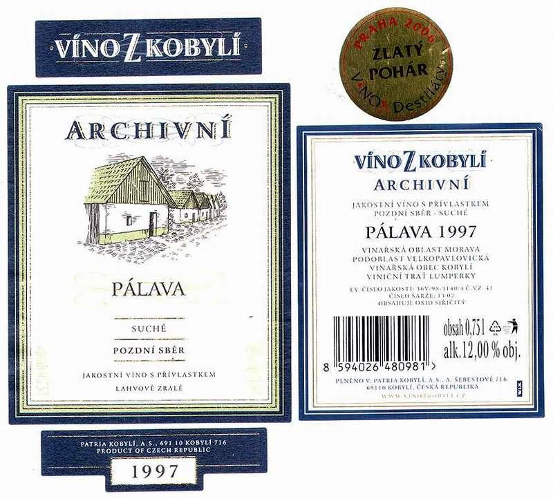 Shrnutí údajů o dnešním víně:Odrůda: PálavaRočník: 1997Jakost: pozdní sběr (archivní)Zatřídění dle zbytkového cukru: suchélVinařská oblast: MoravaVinařská podoblast: VelkopavlovickáVinařská obec: KobylíViniční trať: LumperkyVýrobce: Patria Kobylí, a.s.Alkohol: 12,0 % obj.Obsah zbytkového cukru: 1,8 g/lObsah kyselin: 6,5 g/lBezcukerný extrakt: 21,4 g/lRok lahvování: 2005Evidenční číslo jakosti: 6V/98-3140/4Číslo vzorku: 4Výrobní šarže: 13/02Získaná ocenění: Zlatá medaile - Víno a destiláty 2006, Bronzová medaile - Valtické vinné trhy 2004Teplota skladování: 6 - 15 ºCTeplota podávání: 11 - 12 ºCCena: 200,- Kč (podniková vinotéka Patria Kobylí, a.s.)