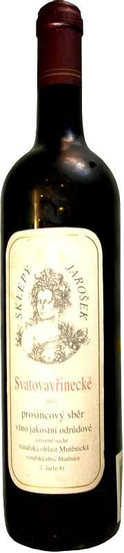 Shrnutí údajů o dnešním víně:Odrůda: SvatovavřineckéRočník: 2002Jakost: odrůdové jakostníZatřídění dle zbytkového cukru: suchéVinařská oblast: MutěnickáVinařská obec: MutěniceViniční trať: Dubňanská horaVýrobce: Sklepy Jarošek, MutěniceAlkohol: 12,5 % obj.Číslo šarže: 41Teplota podávání: 16 - 18 °C na zadní etiketě je chybně uvedeno 9 - 12 °CZpůsob odlepení etikety: lahev ponořit do horké vodyCena: 158,- Kč (přímo z vinařství v srpnu 2006)