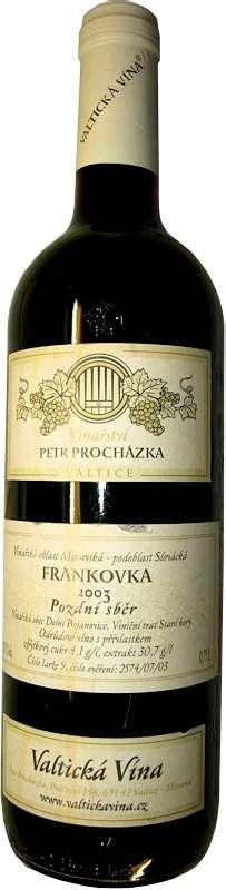 Frankovka 2003 pozdní sběr - Valtická vína vinařství Petr Procházka, Valtice