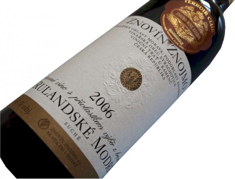 Shrnutí údajů o dnešním víně:Obchodní název: Terroir clubOdrůda: Rulandské modréRočník: 2006Jakost: výběr z hroznůZatřídění dle zbytkového cukru: suchéVinařská oblast: MoravaVinařská podoblast: ZnojemskáVinařská obec: StrachoticeViniční trať: U kamenůVýrobce: Znovín Znojmo a.s.Alkohol: 13,0 % obj.Číslo šarže: 6108Evidenční číslo jakosti: 25D1-07/49Obsah zbytkového cukru: 3,1 g/lObsah kyselin: 4,3 g/lBezcukerný extrakt: 28,5 g/lDoporučená archivace: 2013 - 2017Teplota skladování: 6 - 13 °CTeplota podávání: 16 - 18 °COcenění: Zlatá medaile na mezinárodní soutěži vín FESTWINE Brno (2007)Způsob odlepení etikety: lahev ponořit do horké vodyCena: 155,- Kč (Zásilková služba Znovínu v srpnu 2010)