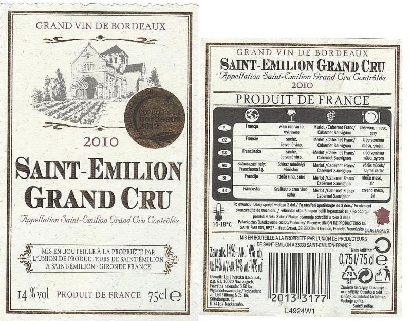 Saint-Émilion Grand Cru 2010 Appellation St.-Émilion Grand Cru Contrôlée (AOC) - Union Des Producteurs De Saint-Emilion Libournais, Francie