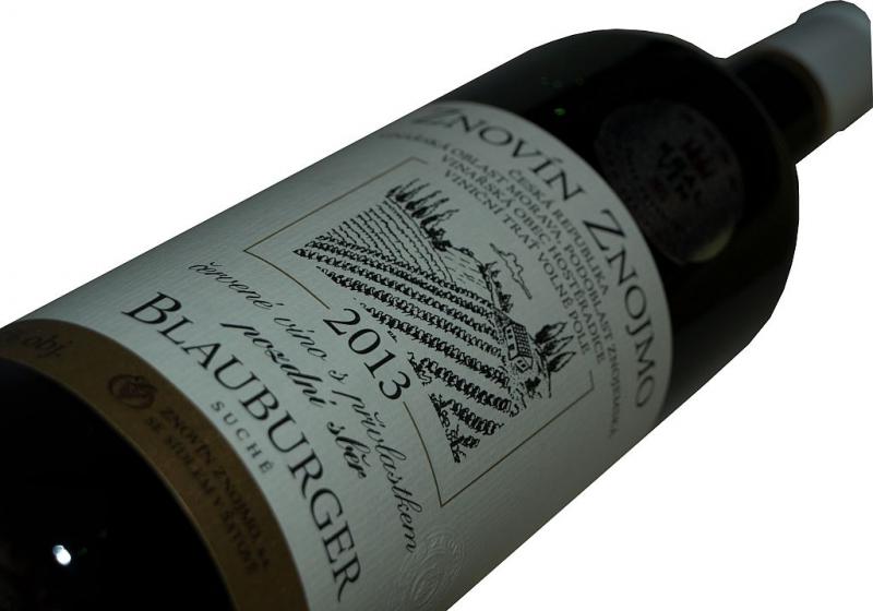 Lahev suchého Blauburgeru 2013 pozdní sběr, jsem koupil v dubnu 2016 za 150,- Kč (prodejna Znovínu v Louckém klášteře). Hrozny mají původ na viniční trati Volné pole v obci Hostěradice.