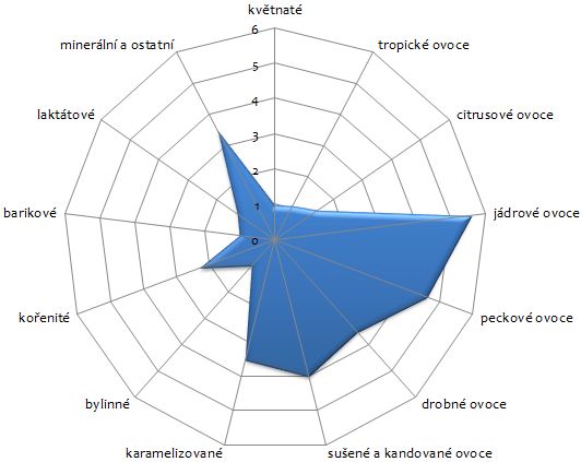 Barva je zlato-žlutá, má vysokou viskozitu a velmi slušnou intenzitu odpovídající přívlastku a také sur lie. Vůně je poněkud uzavřená a potřebuje rozdýchat, což je vzhledem ke stále mladému ročníku překvapivé. Najdete zde slabé ovocité tóny v podobě vyzrálých hrušek a kompotového ovoce.