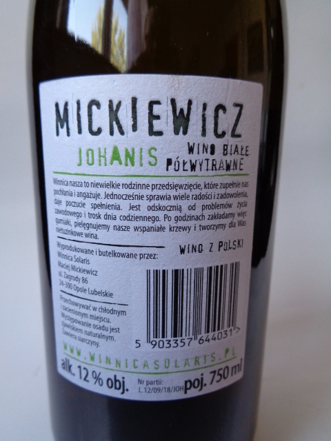 Před nedávnem byla na ovine.cz moje recenze na zweigla-Pikadora z vinařství pana Mickiewicze. Hodnocení dopadlo dobře, tak jsem byl zvědav na jeho další víno, tentokrát z odrůdy Johanniter.