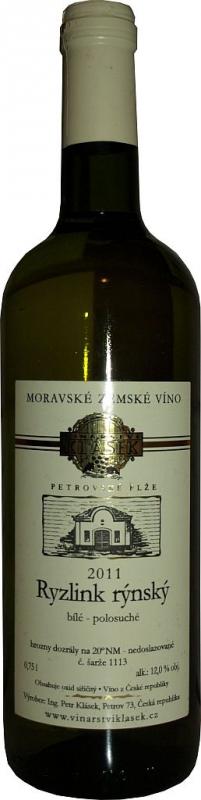 6. Ryzlink rýnský 2011 zemské - Vinařství Klásek Petr, Petrov