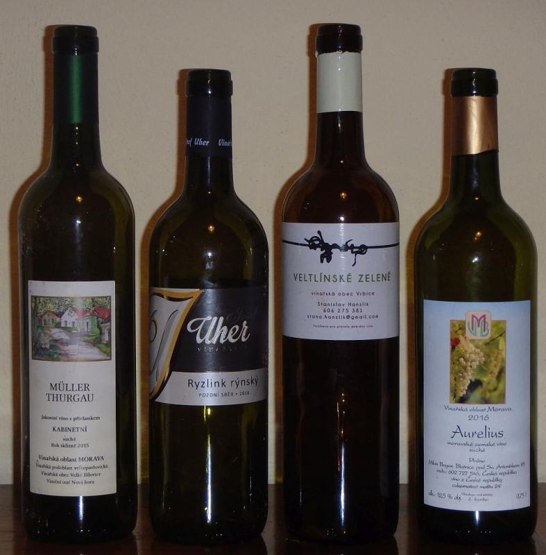 Müller Thurgau 2015 kabinetní, suché, Hana Mádlová, Velké Bílovice - vůně oříšků a ovoce, vyzrálé víno s chutí lískových oříšků, stále dobře pitelné s příjemnou kyselinou, horších 7,5 (82) bodů. Střední tělo i dochuť. Alkohol 12,0 %. Viniční trať Nová hora, č.š. 1510, ev. č.j. 113A1-16. Cena na internetu 150,- Kč.
