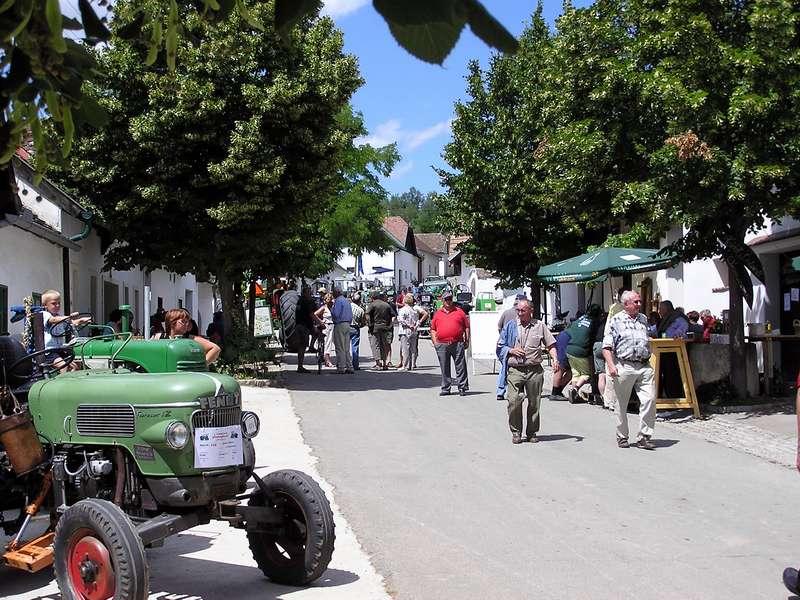Přátelé u nás by to asi byl docela problém. Nedovedu si dost dobře představit jak by reagovala naše policie, různí bezpečáci a kdoví kdo ještě. Sednout si totiž v deseti či patnácti lidech na dřevěné lavice postavené na malé vlečce (!!!) za traktorem a pomalu projíždět vinicemi a kochat se okolní krajinou. Občas se zastavit vyslechnout informace o vinici od vinaře a šoféra v jedné osobě, podiskutovat s ním, ochutnat pár vzorků vína přímo u keřů z nichž se sbíraly hrozny pro ochutnávané víno a po dvou hodinách kodrcání a natřásání zastavit u sklípku. Tam si ještě něco přechutnat, najíst se a případně koupit pár kartonů domů. Docela atraktivní, pohodová a lákavá projížďka, že? Ale u nás pro samé bezpečnostní předpisy a další zádrhely asi těžko realizovaná.Tak takové traktorové výlety do vinic se v poslední době vyrojily v sousedním Rakousku jako houby po dešti. Za 7 - 10 € si můžeme zavzpomínat na doby našich malých stařičkých Zetorů 25 a hlavně pokochat se nádhernými vinicemi i atraktivitou jízdy na vlečce traktoru. To je sice denní „romantika" místních vinařů obdělávající své vinice, ale pro většinu z nás dávná a téměř zapomenutá, dnes ovšem velice atraktivní „exotika" všedních dnů. Ale v Poysdorfu, Hauggsdorfu, Alberndorfu, Retzu, Unterretzbachu a v mnoha dalších vesnicích Weinviertelu je to stále častější nabídka vinařů, jak přilákat turisty a milovníky vína, aby se podívali do vinohradů kde se víno rodí a samozřejmě do svých sklepů a nějaké to euro z nich utržit.Je až s podivem, kolik traktorových fandů a sběratelů je mezi místními vinaři. V létě jsme jeli z Pavlova, kde jsme strávili několik parádních dnů v hotelu Pavlov přes Mikulov do hlavního města veltlínu Poysdorfu, jak se toto město honosně ve všech prospektech nazývá. Po důkladné prohlídce a nezbytném fotografování jsme pokračovali dál do Retzu, kde jsme chtěli strávit celý víkend. Když jsme projížděli vinařskou obcí Alberndorf im Pulkautal, vzpomněl jsem si, že je tu nádherná sklepní ulička, kterou jsem navštívil jednou v zimě a na jaře a chtěl si ji nafotografovat v letním odpoledni. Už cestou nás ale zaujaly malé nazdobené traktory zaparkované či jedoucí proti nám. Kousek za vesnicí, kde začínala ulička, byla před námi závora, množství aut na louce, ve stráni a mezi vinicemi a davy lidí. Asi tu bude nějaká místní vinařská slavnost, o které není ve vinařských vesnicích nouze. Když jsme se prodrali spoustou lidí stojících frontu na pořádný řízek na začátek sklepní uličky, spatřili jsme desítky a desítky malých traktorů a traktůrků, různého stáří, barev a technické zachovalosti. Některé byly přímo fantastické kousky! Nejsem žádný obdivovatel traktorů, ale to množství strojů nás doslova ohromilo. No jasně, už to máme! Dnes se koná první "Traktorkirtag" přátel a milovníků malých vinařských traktorů, jak stojí napsáno na velkém bílém transparentu. A tak jsme se nečekaně dostali do vírů úžasné a neobvyklé slavnosti, kde hlavními aktéry byly přes dvě stovky (!) malé zemědělské stroje. Obdivovali jsme stroje staré desítky let, některé ještě předválečné všech možných světových značek. Bohužel ani jeden z nich nebyl již zmiňovaný Zetor 25 nebo vůbec nějaký stroj vyrobený kdysi u nás. Všude bylo plno lidí, všechny sklepy po obou stranách přes půl kilometru dlouhé uličky, která se ještě v jedné třetině rozdvojila, otevřené s nabídkou velkého množství vína a jídla. Pomalu jsme procházeli, když najednou všechny traktory zaburácely a pomalu se vydaly na okružní jízdu řízené šťastnými majiteli, mnohdy i ve stylovém oblečení. Byla to přehlídková jízda, na jejímž konci se vyhlašovali vítězové v různých kategoriích, za obrovské pozornosti všech návštěvníků. Jeden z pořadatelů nám řekl, že přehlídka traktorů je zde letos poprvé, ale že podobné akce se dělají již několik let v různých částech Weinviertelu. Mnoho vinařů totiž vlastní malé traktory bez ohledu zda jsou staré či nové a pracují s nimi ve vinicích. Jsou ale navíc takoví, kteří především staré traktory sbírají, opravují a pořádají srazy a akce. Něco podobného jako u nás sběratelé automobilových veteránů. V každém případě to bylo velice pěkně strávené odpoledne s mnoha novými zážitky. Vynalézavost místních vinařů nezná mezí a to je dobře. Není víkendu, aby se nekonala nějaká podobná slavnost, setkání či místní kulinářské speciality v nějaké vinařské obci, ale pochopitelně vždy spojené s ochutnáváním místních vín. Prostě se dovedou bavit a užívat.