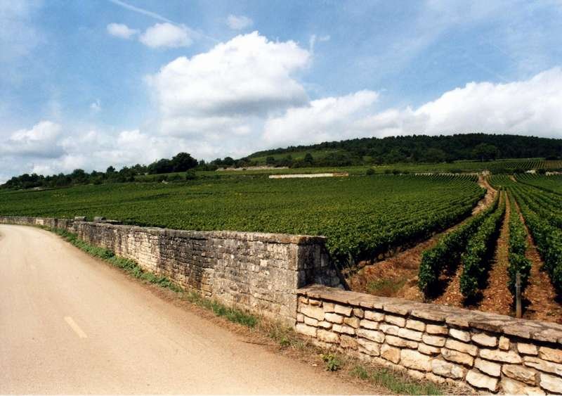 Na tomhle výletě mi přišlo příjemné, že člověk nemusí někam kalit autem, ale pěšky vyjde z kempu a zase se tam upocen a uchozen zase vrátí. Třeba i popít cestou může. Hned za branou kempu je zdí obklopený Clos de Meix Tavaux (monopole firmy François Gaunoux) a za ním výhled na stráně vinic, které přímo lákají k návštěvě. Zrovna ale to viditelné od kempu, ač se to nezdá, jsou jen poměrně málo známé tratě Village kvality. Kdybych neměl matné tušení, že někam na dno archivu jsem ukládal Les Grands Charrons, asi bych zahájil pochod přímočařeji směr Puligny. Takto jsem se ve snaze odlišit Grands Charrons od Tessonu a najít nějaké fotogenické místo trochu bezradně zamotal do spleti cest, které mne vynesly do podivuhodných paloučků a stromy obrostlých zákoutí, které bych jinak jen z povzdálí minul. Tady by se stanovalo... Stejně zoufale jsem hledal i jednu z nejvyhlášenějších premiérových tratí - Les Gouttes d´Or („zlaté slzy"- takový název mne prostě nemůže nechat v klidu). V Johnsonově atlase tato vinice vychází zrovna na předěl dvou stran, což vyvolává až nutkání vazbu knihy rozervat ve snaze dostat se k tomu, co ukrývá záhyb mapy. Samotná trať snad ani na první pohled nevypadá nějak zvláštně, ale je vsazena do celkem zajímavého okolí. Pod ní, souměrně mezi dvě půle Les Terres Blanches, se vyloupl až piknikově útulný vodní rezervoár. A nad ní je kompaktnost viniční monokultury rozčísnuta vprostřed svahu podivnou skrumáží lesíků strání a louček, skoro jako by si tam meursaultští hýčkali jakýsi odlehlý městský park, zákoutí pro schůzky zamilovaných, které dávné vzpomínky na krásné chvíle nedovolí rozorat a exploatovat. Rozpadající se zídky a poněkud zdivočelý mikrosvět kolem nich tyto melancholické dojmy jen umocňují.To dále, neméně legendární tratě Les Porusots a hlavně Les Genevrières a Charmes, mají zídky sterilně vyspárované, očištěné, keře vyklučené, úhor úpravně uhrabán, trávník sestřižen. Ten podivný erb na fotografii Les Porusots je vždy u vinice, jejíž část je v majetku Hospice de Beaune. Původně špitál a chudobinec se darovanými kousky vinic od vděčných uzdravených vypracoval na velkou charitativní instituci (ale nemocnici spravuje dodnes) jejíž tradiční lednové dražby v podstatě určují ceny všech burgundských vín daného ročníku. To mi ovšem nezabrání pěkně od plic říci, že tyhle cedule s pískovcovým znakem Hospicu jsou možná praktické v tom, že se nerez nemusí pravidelně natírat, ale tenhle design rozhodně není nadčasový a vysloveně se do vinic nehodí. To už jsou snad lepší ty cedule s názvy tratí ve stylu Země živitelka 1987. Neobvykle členitý soubor tratí v jejichž názvu dominuje slovo Perrières (název ostatně naznačuje, že se zde těžil kámen) na mne ze zdejších tratí zapůsobil asi nejvíce.Opuštěný lom ukrývá také malý lesík za Les Combettes a Champ Canet, to už je ovšem výsostné území další vesnice vyhlášené bílými víny - Puligny-Montrachet. Nad Champ Canet jsem zahlédl i jeden domek z vesničky Blagny. Ona je to spíš samota o nějakých pěti staveních, zdola skrytá zrakům za hradbou rozdrobených lesíků. Její tratě jen násobí pocity zmatku a zdánlivého chaosu při snaze pochopit zdejší apelační systém: vína odtud mohou být značená jako Puligny-Montrachet, Puligny-Montrachet Premier Cru, Blagny, Blagny Premier Cru, Meursault a Meursault-Blagny - podle toho, o kterou vinici jde, jestli jde o bílé nebo červené, a u některých vinic to záleží i na libovůli vinaře, protože zákon mu dává na výběr. Slušné - na tak maličkaté království. Z tratí Puligny se mi asi nejvíce zamlouvala Les Folatières, už tím, jak je nepravidelná a také obrostlá až prorostlá okolní vegetací. Taková místa žijí, dýchají. Ostatní tratě, byť neméně slavné, už na mne opět příliš úpravné a směrem dolů k vesnici i přes semtam osamělý strom nudné, placaté.Postupně se blížíme k nejslavnějším vinicím, k Montrachetům. Stejná situace jako u Chambertinů. Cesta jakoby dělila tyto Grand Cru velikány na dva světy. K vesnici se táhne plochý monokulturní blok, u něhož trochu nechápete, čím je obdelník Bâtard-Montrachetu, Bienvenues Bâtard-Montrachetu a Criots Bâtard-Montrachetu tak odlišný od bezprostředně navazujících tratí s pouhou Village třídou. Naproti přes cestu přeci jen svažitější a majestátnější dvojpás Le Montrachetu a Chevalier-Montrachetu. Zejména Chevalier je až teráskovitě rozčleněn, rozhodně má svůj půvab a neopakovatelnost. Samozřejmě se snažím, aby mi neunikl sebemenší detail toho, proč zrovna z Le Montrachetu pocházejí nejdražší suchá bílá vína na světě konkurující (a někdy překonávající) cenou i nejlepší červená z Bordeaux. Nevím, nenašel jsem. Jen je patrná až extrémně úzkostlivá péče o tento vinohrad. Zřejmě výkladní skříň každého vinařství. Brána do Montrachetu s do kamene vytesaným jménem vinaře se asi v reklamních materiálech vyjímá jako medaile na vojenském stejnokroji, jinak by takové brány nekrášlily zeď Montrachetu po každých padesáti metrech. Le Montrachet je zajímavě zakončen takovým propadlem s tratí Blanchot Dessus a roztomilými viničkami nazvanými Dent de Chien neboli Psí zub.Vesnice Chassagne-Montrachet mne nějak nelákala k návštěvě (ostatně i Puligny-Montrachet jsem vynechal), snad příště. Odbyl jsem to jedním fotem tratí ve svahu nad obcí a pokračovali jsme poměrně frekventovanou silnicí zaříznutým údolím výše, do vesnice Saint-Aubin. Mé srdce plesalo - po pravé straně konečně divoká vinice, kde místo depresivního černého úhoru dlí měkká druhov