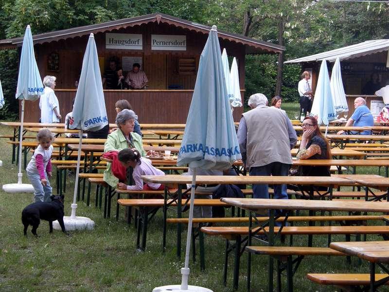 Protože kvalita vín z oblasti západního Weinviertelu je opravdu vysoká, zájem o tuto akci je každým rokem větší a větší. Město je plné aut, autobusů snad z celého Rakouska, ale i od nás. Ubytování v soukromí je beznadějně obsazené, penziony a hotely jsou rezervované a rezervované měsíce předem. O víkendech je parková zahrada otevřená od 15:00 hod., ve všední dny od 18:00 hod. do půlnoci. Přicházíme do zahrady hlavní bránou, která stojí u silnice do Hollabrunnu, mnozí přicházejí i dalšími dvěma bočními vchody. V parku je malá kašna s fontánou, uprostřed stojí pavilon a kolem celé zahrady jsou rozestavěné dřevěné chatky s nápisem jednotlivých vinařských obcí. Nabízejí tu všechna vína dané obce, buď na ochutnání nebo prodávají lahve či celé kartony. Mezi stromy potom jsou rozestavěné lavice a stoly, které se zejména navečer a večer zcela zaplní stovkami a stovkami návštěvníků. V chatce informačního střediska je spousta perfektních vinařských prospektů, map a propagačních materiálů. Zde si návštěvník zakoupí za 4,- € zálohované vratné sklenice, katalog za 1,- € a po nezbytném prostudování může vyrazit k jednotlivým pultům vinařských chatek. Cena degustačních vzorků je dvojí, tak zvaná „kostprobe" (1/16 l) stojí 0,80 €, nebo 1/8 za € a případně výš zda se jedná o slámové či ledové víno. Díky zpevňující koruně je cena pro nás rok od roku nižší. I když je vše na sklenkách označené čísly i ryskami, zpravidla při nalévání každému vinaři tak trochu ulítne ruka v náš prospěch. Mám tu už „svůj" tradiční stůl a tak jej obsazujeme a vydáváme se za víny...