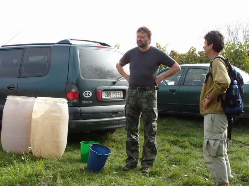 U dřevěné sochy knížete Sáma posvačíme (je zde možnost posedět), popijeme ze zásob a přejdeme do milotických sklepů „Pod Šidleny"(téměř 300 vinných sklípků). Procházíme oblastí, kde jsou hlavně drobní pěstitelé mající často pouze několik stovek hlav vinné révy. Zjišťuji, že v posledních letech jsou v této oblasti nejvíce sázenými odrůdami Chardonnay(zrovna se sklízelo minulý týden, tak jsem již nemohl posoudit kvalitu), Frankovka a Veltlínské zelené, v menší míře Aurelius, Muškát moravský a Cabernet Sauvignon. Značně se omezila výsadba Svatovavřineckého, Zweigeltrebe, André a hlavně Tramínu červeného, což by se mohlo ukázat být do budoucna jako fatální chyba. Ochutnali jsme několik vynikajích Tramínů (ročníky 2002 a 2004), které by mohly konkurovat vzorkům na světových soutěžích.