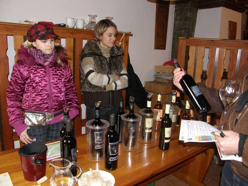 Z celkového počtu 79 vzorků bylo 16 pozdních sběrů, 8 kabinetů, 2 výběry z hroznů a 1 výběr z bobulí. Ostatní byla odrůdová vína jakostní. Z celkového počtu 14 červených odrůd bylo nejvíce zastoupené Svatovavřinecké 7x a Zweigeltrebe 2x stejně jako Modrý Portugal. Ze zbývajících bílých odrůd bylo nejvíce zastoupeno Veltlínské zelené 8x, Sauvignon 7x, Müller-Thurgau 6x stejně jako Rulandské bílé atd. Kvalita vín byla pochopitelně různá, ale to nebylo naprosto na škodu, bylo co ochutnávat, srovnávat a třeba se i poučit. Ovšem obecně musím říci, že dobšická vína jsou dobrá a některá opravdu vynikající. Nehodnotili jsme vína ve svých poznámkách nějak podrobně (téměř vůbec), chtěli jsme si to prostě jenom užít a to se myslím docela podařilo. V bláhovém naději, že se tu snad setkám s některými kolegy co píší na tento web, jsem si ještě ráno prohlédl fotografie v článku „Jak nás neznáte", abych snad někoho poznal. Ve dvou případech jsem si myslel, že někoho poznávám a oslovil jsem, no nepodařilo se. Potom mně to už přátelé rozmluvili, abych neblbnul, ochutnal další vzorky a potom že prý už budeme všichni vypadat stejně.