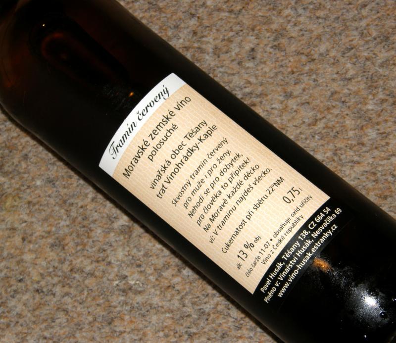 Tramín červený 2007 moravské zemské víno, Rodinné vinařství Pavel Husák, Nesvačilka