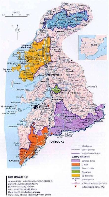Na bílá španělská vína z vinařské oblasti Galicia jsem si dělal zálusk již několik let. Zvláště poté, co jsem zde strávil čtyři týdny na přelomu září a října 2002, mám k této oblasti velmi vřelý vztah. Několik svých dojmů z těchto končin jsem zmínil v recenzi Ferreira Porto Tawny. Na toulkách po Rías Baixas, jak se této části atlantického pobřeží kolem ústí řek do oceánu říká, jsem prošel několik vinic v okolí Viga a podél pobřeží Vilagarcia de Arousa. Vinice mají úplně jiný ráz než v ostatních částech Španělska, jak můžete vidět na několika fotografiích v článku Vinice ve vinařské oblasti Rías Baixas - autonomní oblast Galicie. Jsou roztroušené po krajině, většinou se jedná o malé plochy se zvláštním vedením révy, které připomíná jakési pergoly, pod kterými se můžete klidně procházet. Tento způsob pěstování révy vinné vytváří pro hrozny jakýsi polostín a podle mne chrání hrozny před sluncem, ale možná se mýlím.Vinařská oblast Galicia se z vinařského pohledu dělí na podoblast Monterrei, Rías Baixas, Ribeira Sacra, Ribeiro a Valdeorras. Podoblast Rías Baixas se dále dělí do několika subzón kolem města Vigo, Pontevedra, Ourense a Santiago de Compostela, které je významným poutním místem s celou řadou významných památek v čele s katedrálou svatého Jakuba. Tato oblast kolem atlantického pobřeží se vyznačuje nádhernými skalnatými zálivy (rías) zařezávajícími se hluboko do vnitrozemí a s mnoha ostrůvky. Jsou zde kouzelné pláže s bílým pískem, rybářskými městečky a přístavy. Podnebí je tu mírné, v zimních měsících dost prší, ale bez pláštěnky či deštníku sem nejezděte ani v létě. Chladnější a především vlhké prodění předurčilo i zaměření vinařů na bílé odrůdy, které odolávají častým srážkám a vlhkému oceánskému proudění. Galicie proto patří k tzv. zelenému Španělsku (Costa Verde), což je velký kontrast s centrálním územím Iberijského poloostrova, na kterém dominuje hnědo-červená barva.Dnešní bílé víno s obchodním názvem La Val 2005 Denominación de Origen (DO) pochází z podoblasti Rías Baixas a koupil jsem ho loni v jednom supermarketu na Mallorce. A protože jsem se již zmínil o vinařské oblasti/podoblasti věnuji následující odstavec odrůdě, která byla použitá pro La Val. Hrozny byly zlehka lisovány na pneumatickém lisu. Macerace probíhala při teplotě 10 °C po dobu 48 hodin. Fermentace proběhla v nerezových tancích při řízené teplotě 18 °C po dobu 4 týdnů.Albariño se pěstuje se především na pobřeží Galicie na ploše pouhých 1.700 ha. Pochází ze střední Evropy a je vysoce kvalitní. Setkat se s touto odrůdou můžete také v portugalské oblasti Vinho Verde, která sousedí s Galícií. Vinice jsou ve vlahých zónách, kde je přiměřený sluneční svit. Patří do skupiny bílých vín této vinařské oblasti, pro kterou jsou typická svěží a ovocitá vína. Přesto není dobré je řadit k dalším bílým odrůdám Airén či Macabeo (Viura), se kterými se můžete setkat ve všech oblastech Španělska, ale většinou jde o plochá a nezajímavá bílá vína, protože klimatické podmínky jsou v Galícii tak odlišné, že i samotné hrozny a vyrobená vína z nich jsou o řád zajímavější.Odborná literatura zmiňuje zajímavý charakter vín z této odrůdy a vyjadřuje květinové a ovocité aroma, dlouho trvající a vyváženou chuť. Hrozny se často používají do směsí, ale vína nejvyšší kvality se vyrábějí ze 100 % odrůdy Albariño. Vína jsou často aromatická a mají svůdnou chuť. Plodí velmi málo a pokud dobře vyzraje, výsledná vína mají neuvěřitelných 13 - 13,5 % alkoholu. V intenzivní vůni se projevují citrusové plody a tropické ovoce jako mango nebo mučenka.Pomocí Google se mi podařily najít webové stránky vinařství, sice velmi jednoduché, ale dozvěděl jsem se alespoň základní informace. Vinařství Bodegas La Val bylo založeno v roce 1985 a stalo se pionýrem Denominación de Origen (DO) podoblasti Rías Baixas. Jejich vinice, pojmenované La Val, se nacházejí v obci O Rosal v provincii Pontevedra na březích řeky Miño. Vedle odrůdy Albariño pěstují dále odrůdu Loureiro a Treixadura. Roční produkce dosahuje 700 tisíc lahví vína.Lahev typu Top Bordo má objem 0,75 l (zelené sklo), kvalitní staniolovou záklopku a je uzavřena plným korkem délky 44 mm s potiskem vinařství, odrůdy a DO podoblasti. Adjustáž působí velmi jednoduše. Na etiketě je nepřehlédnutelná silueta vinařství s dominantním názvem La Val. Na zadní etiketě je základní charakteristika vína a dále malá nálepka s označením denominace vinařské podoblasti.Barva je zlato-žlutá se zelenkavými odlesky a krásnou jiskrou. Vůně je příjemná, očekávané ovocité odstíny (grapefruit, limetky) jsou doprovázeny zvláštními travnatými a květinovými tóny. Jsou zde také jemné tóny zralých jablek. Vůně je skutečně okouzlující a čím více popíjíme, tím více se mi líbí.Ve středně dlouhé chuti je nádherná šťavnatost, ovocitost a kořenitost zároveň. Jestli již vůně byla zajímavá a přitažlivá, v chuti to platí dvojnásob. Kyselinka je pikantní, nazrálost je nádherná, takže při popíjení máte stále nutkání k další a další degustaci a objevování. V dozvuku se projeví krásné medovo-kořenité tóny, které vystřídá zajímavá šťavnatost. Překvapily mne tři věci a to velmi dobré tělo a jeho struktura, svěžest a výborná kondice. Kdybych to měl velmi stručně srovnat, Albariño mi trochu připomíná nazrálé Neuburské nebo Rulandské šedé. Při popíjení nás vůbec neomrzelo, spíše naopak, stále jsme v něm objevovali něco nového. Druhý den se 