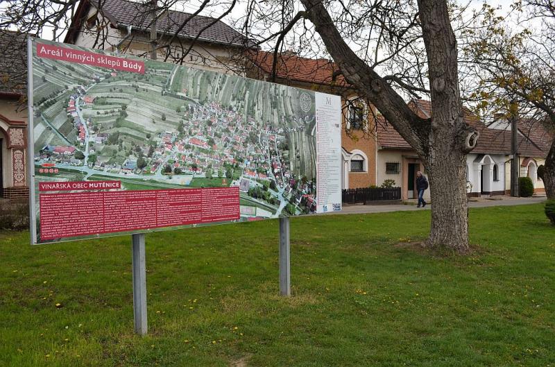 Na prostorném nádvoří vinařství i ve sklepě už ochutnávali mladá i archivní vína z vinařství, desítky účastníků. V nabídce mělo vinařství 12 vín, ale ochutnali jsme jen 3 - 4 jen tak pro začátek. Ovšem mimo nabídky v katalogu jsem si vychutnal několik archivních vín, pěkný suchý Zweigelt 2000, 2004 a několik dalších, z nichž nejstarší byl ještě slušný Modrý Portugal z roku 1995. Pěkně jsem si popovídal se sklepmistrem o suchých vínech, stálém zájmu o vína s vyšším obsahem cukru a vůbec o víně... A protože mám archivní vína docela rád, byl to skvělý začátek pro další ochutnávky v Mutěnicích, které jsou s rozlohou cca 340 ha vinic největší vinařskou obcí Slovácka. V Mutěnicích jsme byli několikrát a tak jsme si vybírali vinařství, která jsme neznali (a že jich tu je požehnaně) anebo kde se nám vína mimořádně líbila. V Mutěnicích je většina sklepů a vinařství umístěna ve sklepní kolonii búd na severu obce. Charakteristickým dekoračním prvkem mutěnického areálu jsou rostlinné a figurální motivy na žudrech a průčelí sklepů. Na červenohnědém podkladu je v omítce vyškrabal místní lidový umělec Ján Lacko. Asi 500 sklepů dnes tvoří pitoreskní vinařskou dědinu s názvy ulic, hospodou i několika penziony.