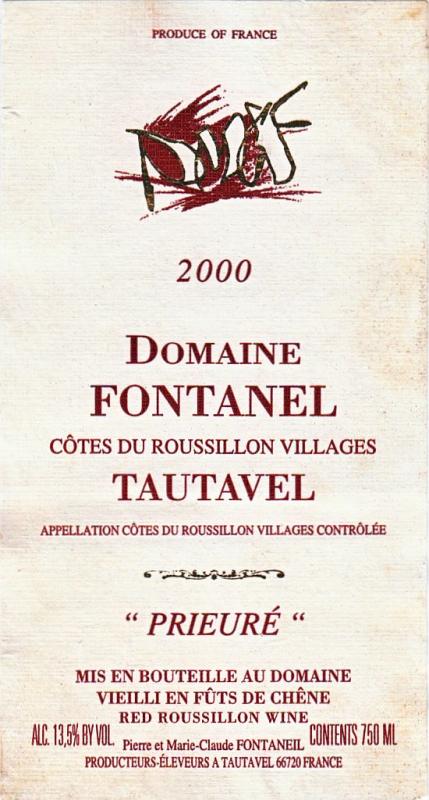Prieuré 2000, Côtes du Roussillon Villages Tautavel AOC, Domaine Fontanel, Tautavel