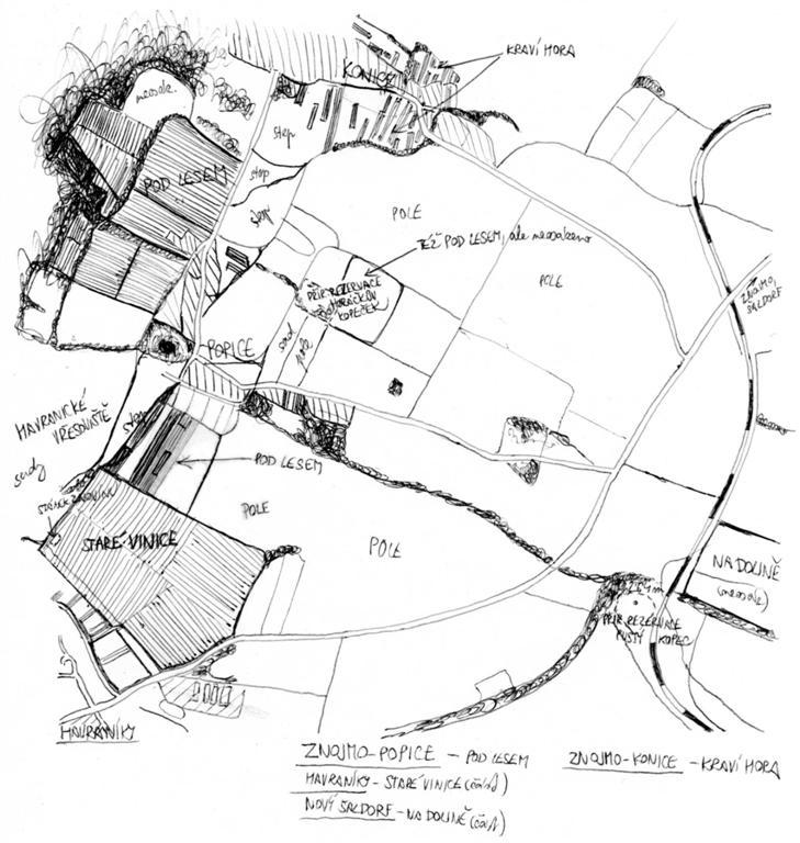 Původní Staré vinice - půvabně vyterasovaný svah mezi Havraníky a Hnánicemi - byly poměrně nedávno rozšířeny o prakticky rovinatý rozlehlý pás na úplně opačné straně obce. To tedy z čistě toho hlediska, že název trati by měl zaručovat určitý jednotný terroir, dost dobře nechápu. Vína ze Starých vinic ovšem nejsou špatná ani z těchto nových výsadeb. Raritou a zdařilým experimentem jsou zdejší exotické odrůdy Chenin blanc a Viognier či polozapomenuté odrůdy původní Bouvier a Modrý janek. Osobně mám z této obce ovšem nejraději veltlíny z magické polohy Skalky. Trať Dlouhé díly je tzv. rezervní, tudíž existuje jen na mapě, není révou vinnou osázena. A je trochu otázkou, jestli bude. Chardonnay ze Skalek jsem postřehl i u Vinařství rodiny Špalkovy, ale netuším, zda to byl jen ojedinělý počin. Jinak dle údajů z konce roku 2007 je v obci registrovaných 38 pěstitelů a osázených 82 ha z celkové výměry tratí 245 ha (osázená plocha tak o11ha za dva roky poklesla). Soubor Podklady2 obsahuje podrobné textové informace o obci od Ing. Čepičky.