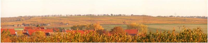 Ale zpět k viniční trati Slovenské, na které nás překvapil nádherně ostříhaný trávník, připomínající golfové či fotbalové hřiště. Zatravnění je ob jeden řádek a je pečlivě udržované a půda obdělaná. Taktéž réva vinná vykazuje velmi dobrou kondici. Díky přístřešku jsme mohli vidět z výšky na tuto trať i do širokého okolí, jak můžete vidět na připojených fotografiích. Jako zajímavost přináším panoramatickou fotografii z podzimní vinice, kterou přebírám z oficiálních stránek vinařství.