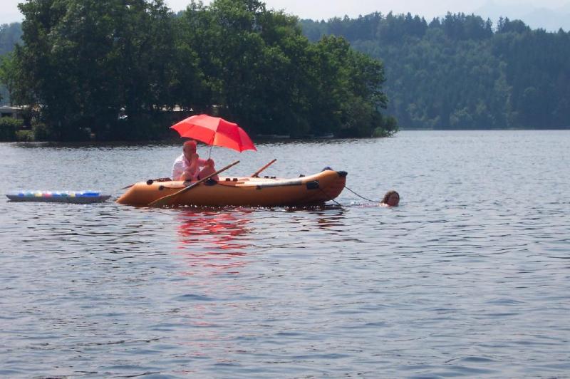 Jura C. přístupovou cestu oplotil a Richard C. tak nyní musí na svůj vinohrad jedině přes vodní plochu Novomlýnských nádrží. K tomu používá svou manželku Bohdanu V. - viz fotografie. Richard V. k tomu říká: "Už mi ani nevadí, že musíme několikrát denně přes vodu - je to pěkná projížďka, i když Bohďa k večeru už tolik netáhne jako z rána, kdy ani nemusím pádlovat".